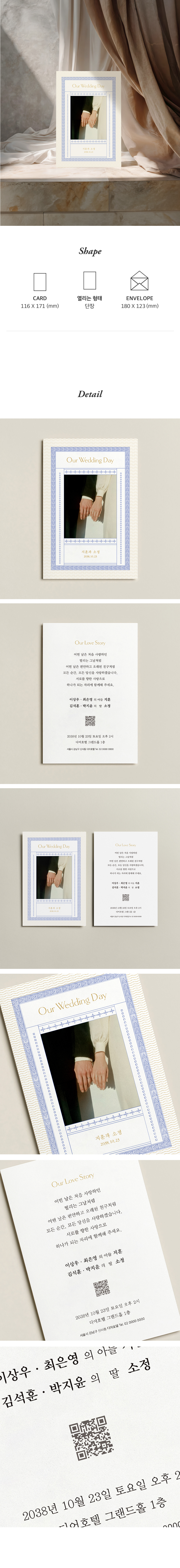 6. 청첩장은 앞면을 더 크게 제작하기 때문에 접었을 때 뒷면이 더 짧게 보여요.